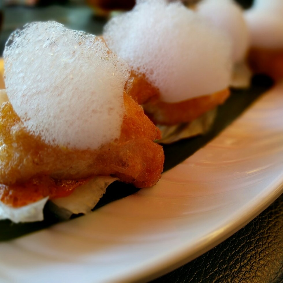 Tacos de rape con aire de yuzu